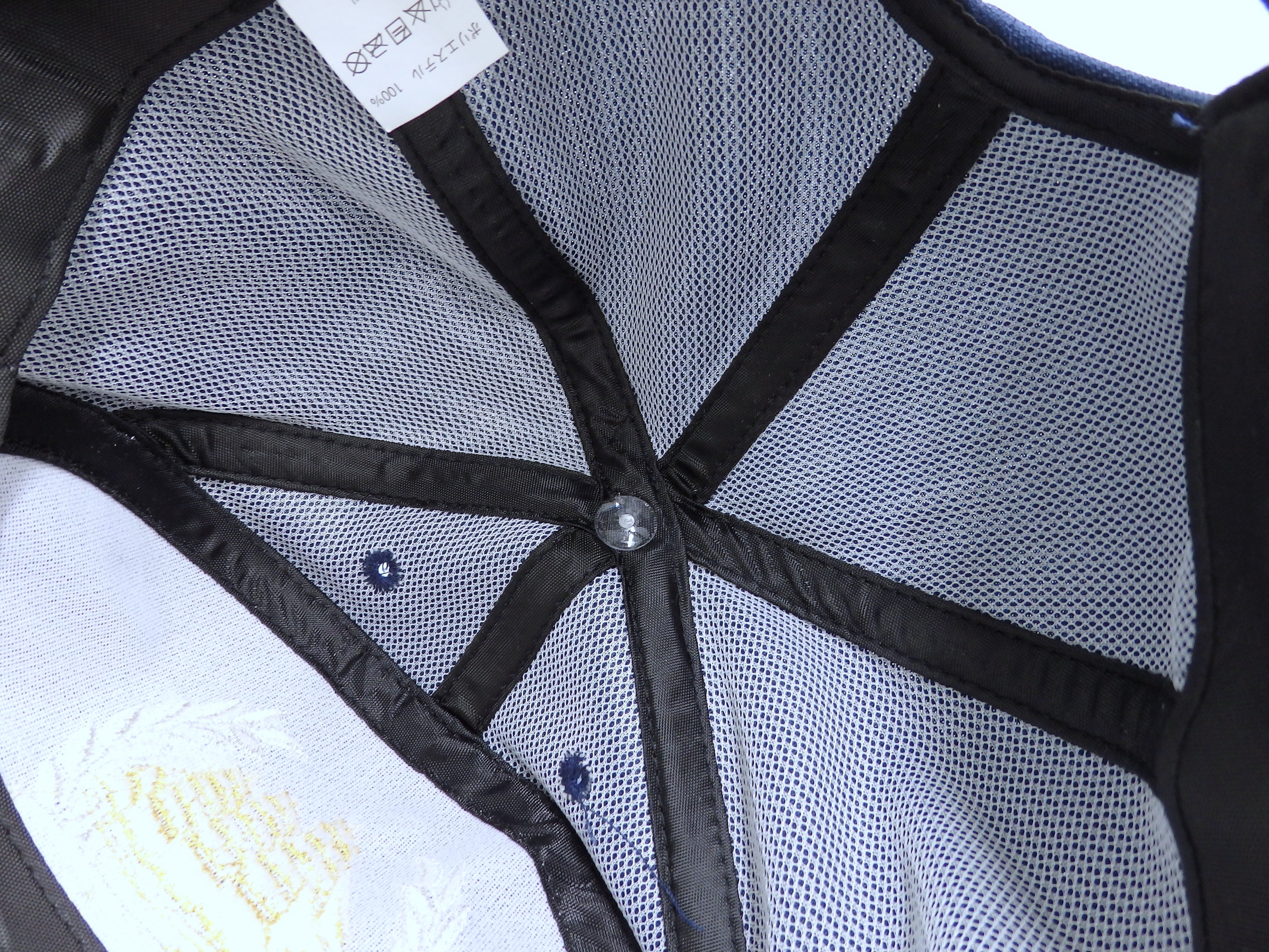 ツバの月桂樹の模様は立体的で素敵です。刺繍の色はシルバー(前頭部の船と船名はゴールド)